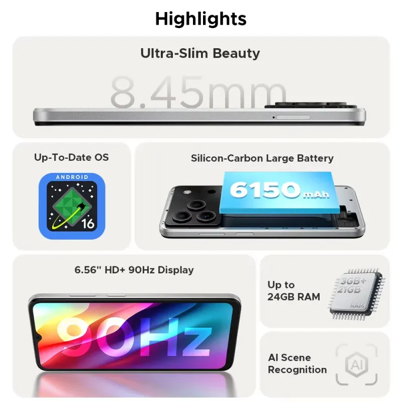 DOOGEE Note56 24GB 64GB 8MP Camera 6.56 inch 90Hz 6150mAh Android 16 UNISOC SC9863A Octa Core 4G Smartphone