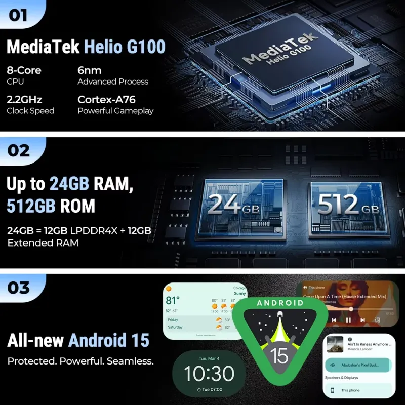 Ulefone Armor 33 25500mAh 118dB Loudspeaker 24GB 512GB Versatile LED Light Warning Light 50MP Triple Camera 64MP Night Vision 6.95 inch 120Hz 66W Fast Charge Android 15 NFC Helio G100 IP68 IP69K Waterproof 4G Rugged Smartphone