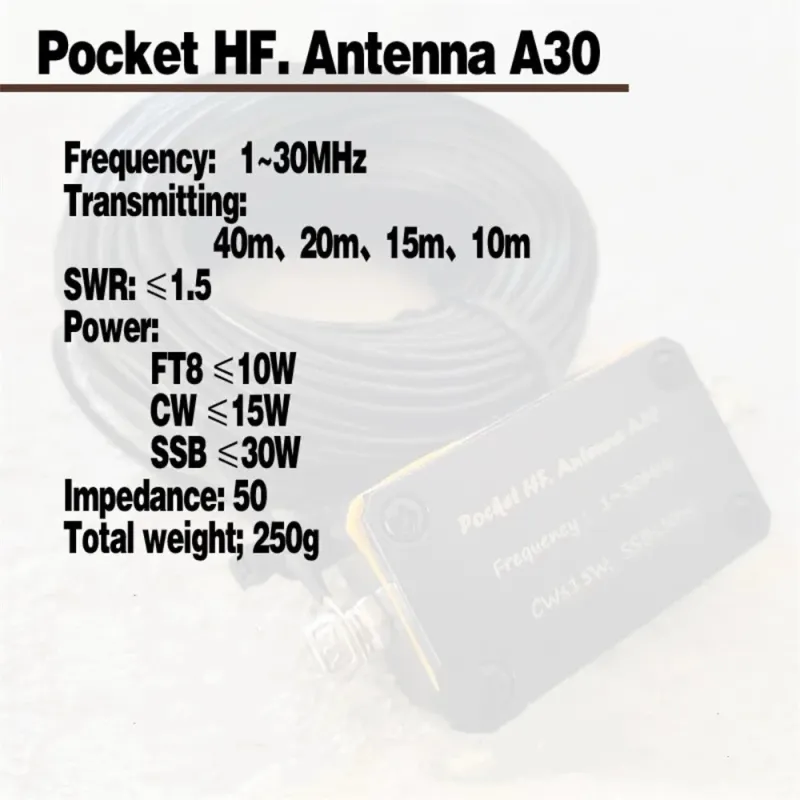 A30 1-30MHz Pocket HF Antenna Shortwave Antenna Inverted V Horizontal Balun Long Line Wideband End-fed