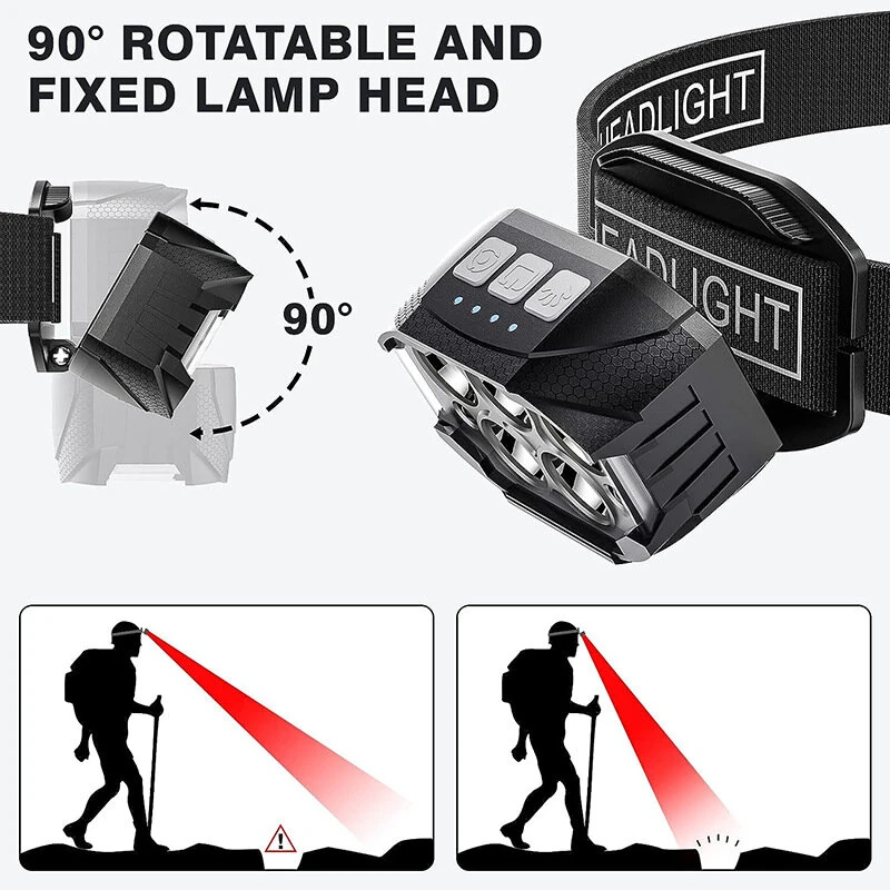 1200LM Super Bright Motion Sensor Headlamp Outdoor Waterproof Head Flashlight USB Charging Headlight for Fishing Camping Search Light