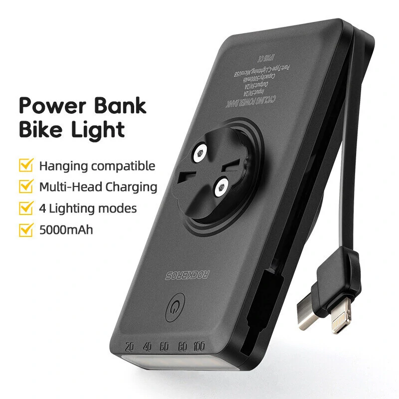 2 in 1 ROCKBRO5000mAh Battery Bike Headlight Type-IPX6 Waterproof 4 Light Modes Power Bank Phone Front Light for Night Cycling Camping