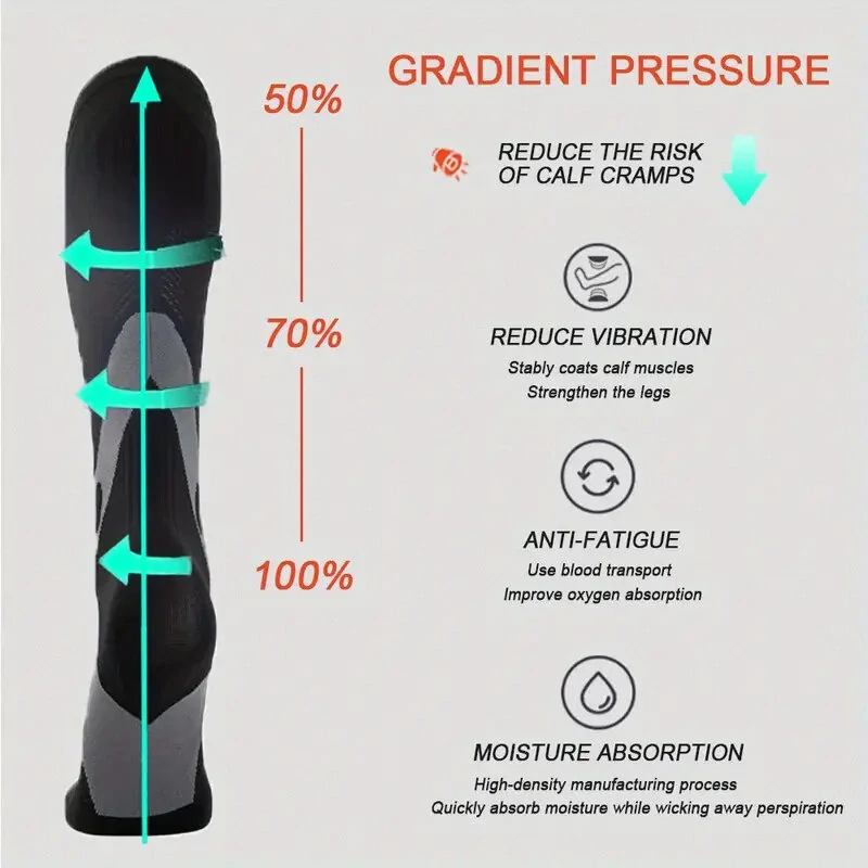 2 Pairs Professional Sports Compression Socks Breathable Sweat-absorbent Calf Socks for Cycling Football Outdoor Sport