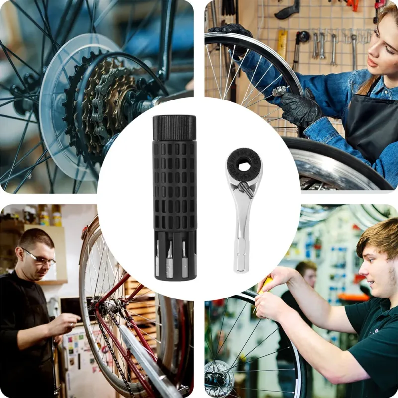 BENGGUO Bicycle Repair Tool Cylindrical Vacuum Tire Repair Portable Mini Ratchet Tool Set Cycling Repair Equipment
