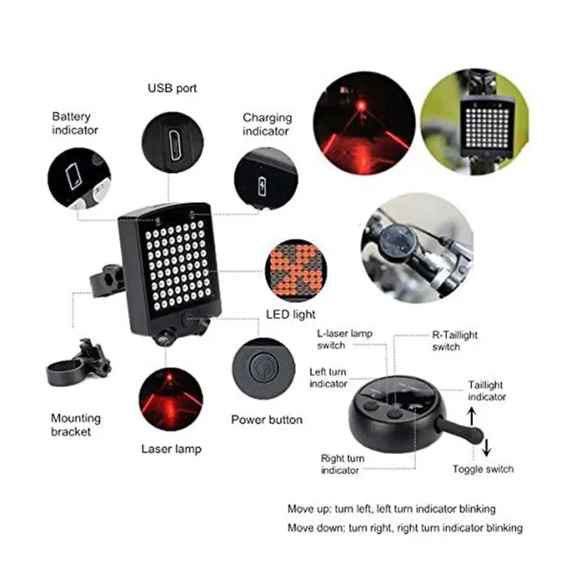BENGGUO Bike Taillight 650mAh Battery 3 Light Modes Waterproof Turn Signal Warning Bicycle Rear Light with Wireless Remote for Night Cycling