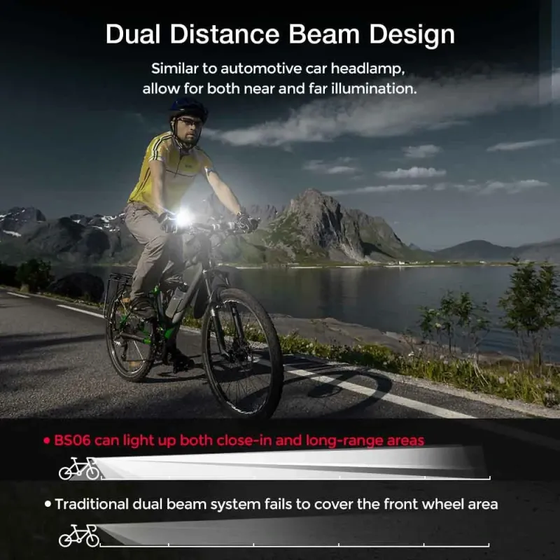 Astrolux BS06 2000Lm Brightness Bike Headlights 6 LELarge Beads 10000mAh Battery Dual Distance Beam Design IPX6 Waterproof 5 Light Modes Type-Fast Charge Easy to Install Bicycle Front Light Flashlight