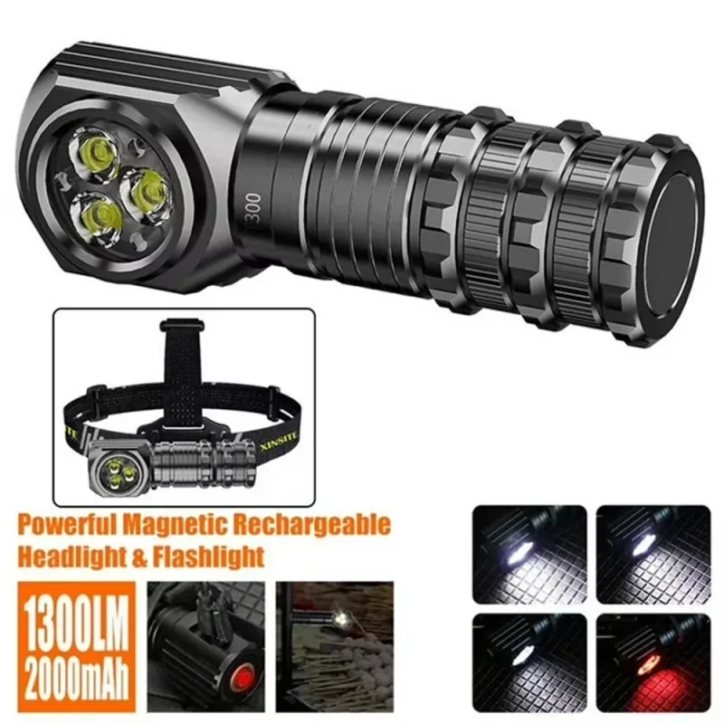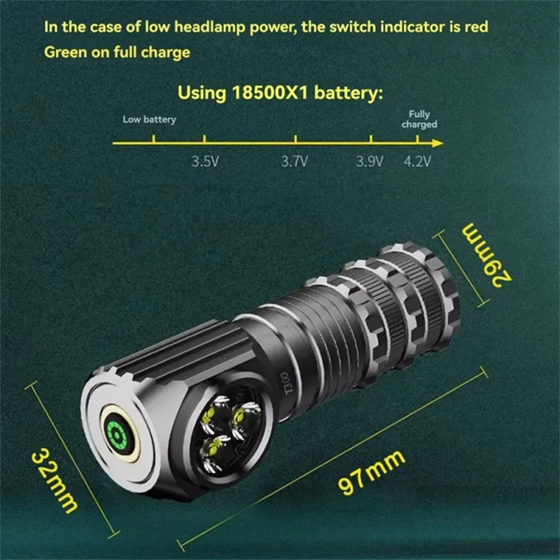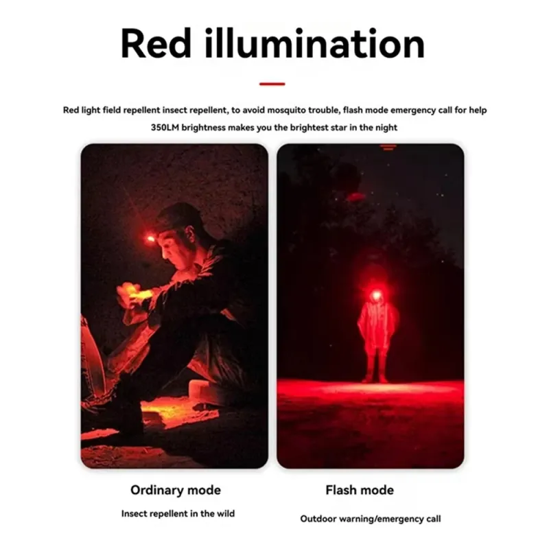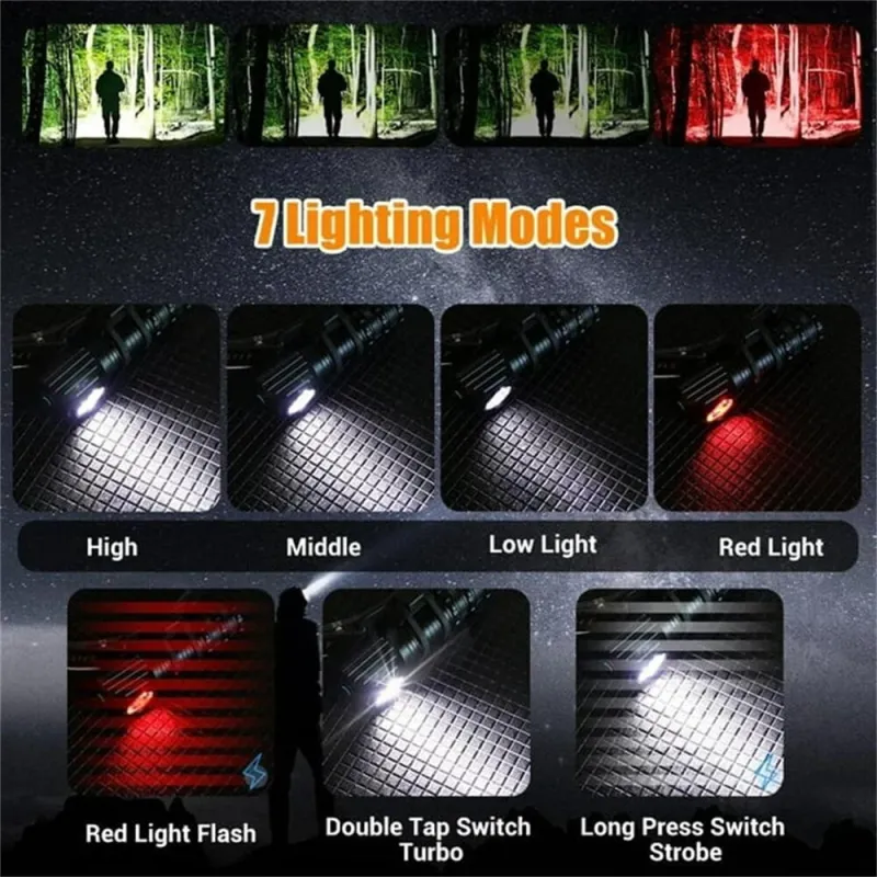 Bikight Type-USB Rechargeable Headlamp 18650 White Red LEHeadlight Fishing Torch 7 Gears Multifunctional Aluminum Alloy Flashlight for Outdoor Camping Hiking Working Running