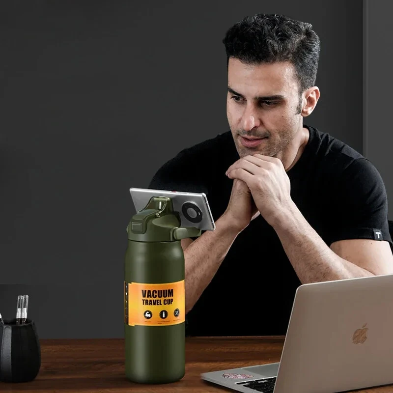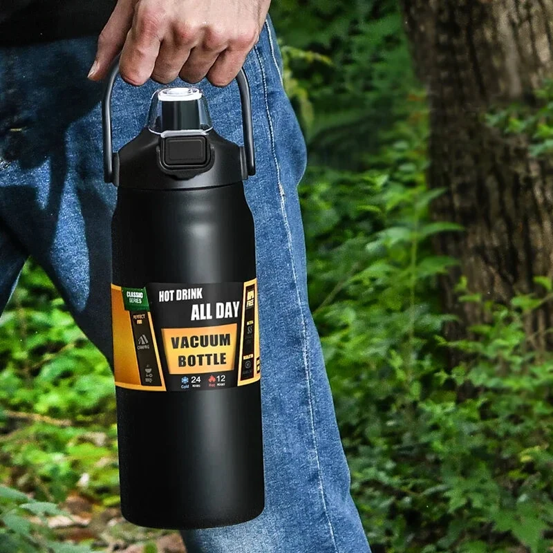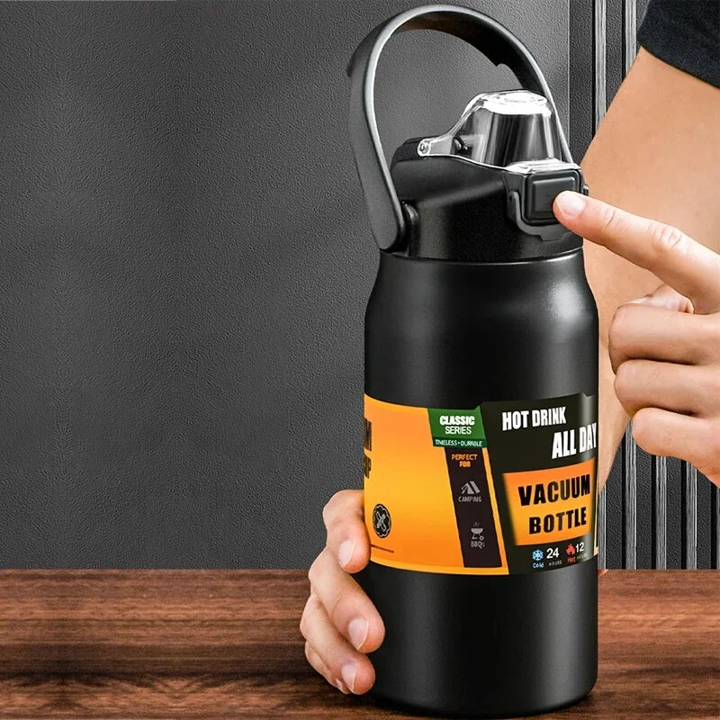 1500ml Large Capacity Portable Thermos Bottle with Straw, 304 Stainless Steel, Thermal Mug, Cup, Coffee Cup, Sports Flasks, Cold and Hot Water Bottle