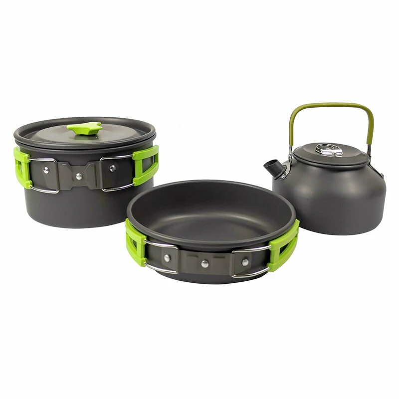 2~3 Person Camping Tableware Aluminum Nonstick Cookware Outdoor Cooking Pan Supplies Kettle Pot Pan Bowl Hiking Trip Picnic