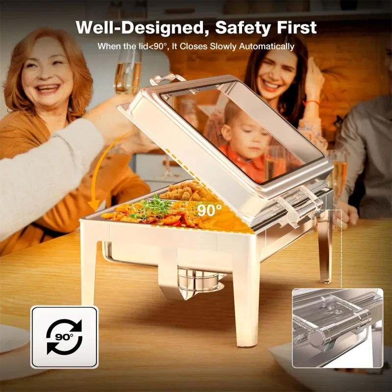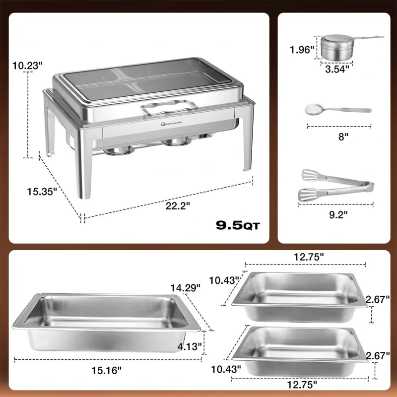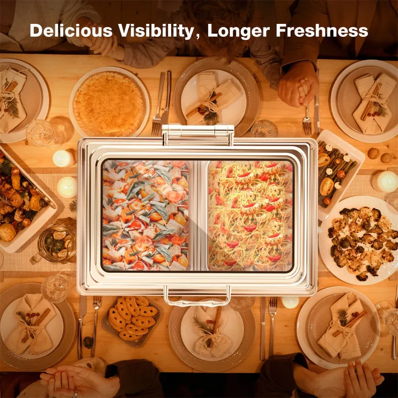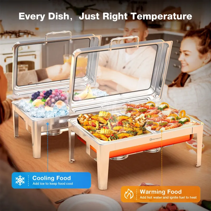 Warmounts 9.5QRectangular Chafing Dish Buffet Set with Hydraulic PivotLid, Stainless Steel Catering Server Food Warmer with 2-Tray Noiseless for Party, Wedding, Restaurant