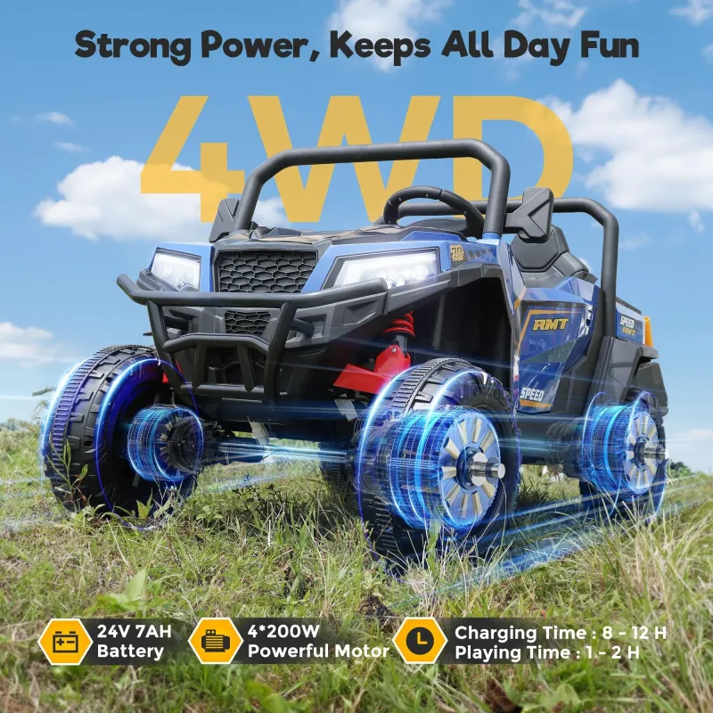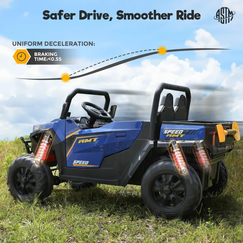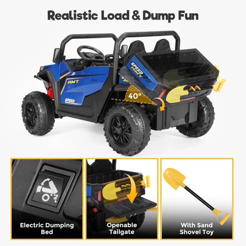 FUNTOK U0124V 7AH Double Seater Kids Ride on Truck Car 8km/h Max Speed Safety Rechargeable Powered Electric Car for 3-8 Years Old Kids with Remote Control