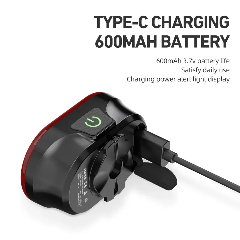 CYCLAMCY200 Smart Bike Brake Sensing Rear Light 600mAh Battery IPX6 Waterproof LECharging Taillight Warning Back Light for Night Cycling