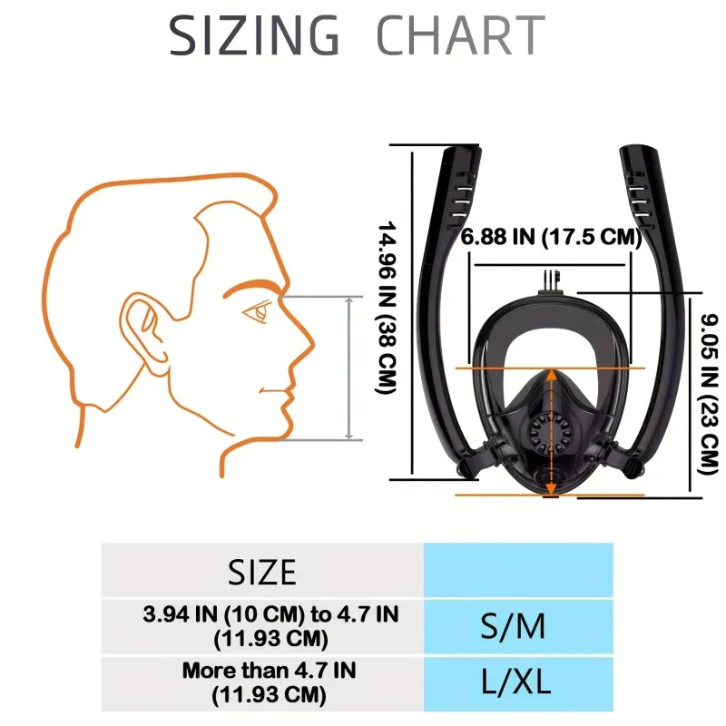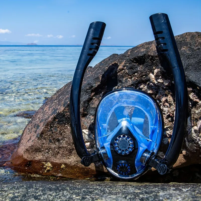 Double Tube Waterproof Anti-fog Goggles 180 Panoramic Full Face Swimming Goggles Fully Dry Snorkel Goggles for Diving