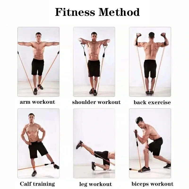 14Pcs TPResistance Bands Pull Rope Indoor Portable Fitness Equipment Arm Waist Leg Chest Trainer Exercise Tools
