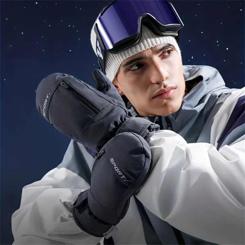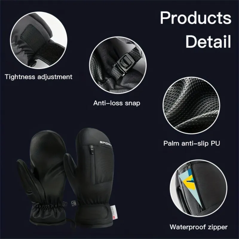 1Pair Outdoor Sports Waterproof Skiing Gloves Professional Thermal Warm Gloves Thick Windproof Snow Gloves Cycling Gloves