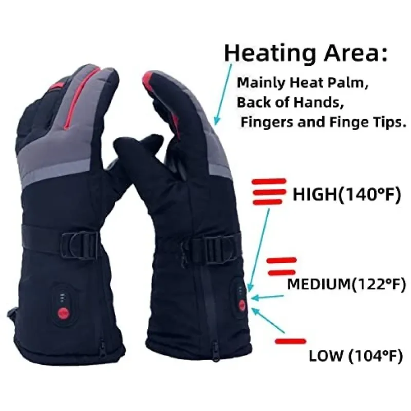 3-mode Adjustable Temperature Electric Heated Gloves Winter Thermal Heating Gloves with Adjustable Elastic Wrist Strap Heat Insulated Heated Cotton Gloves for Winter Sports Outdoors Climbing Hiking Cycling