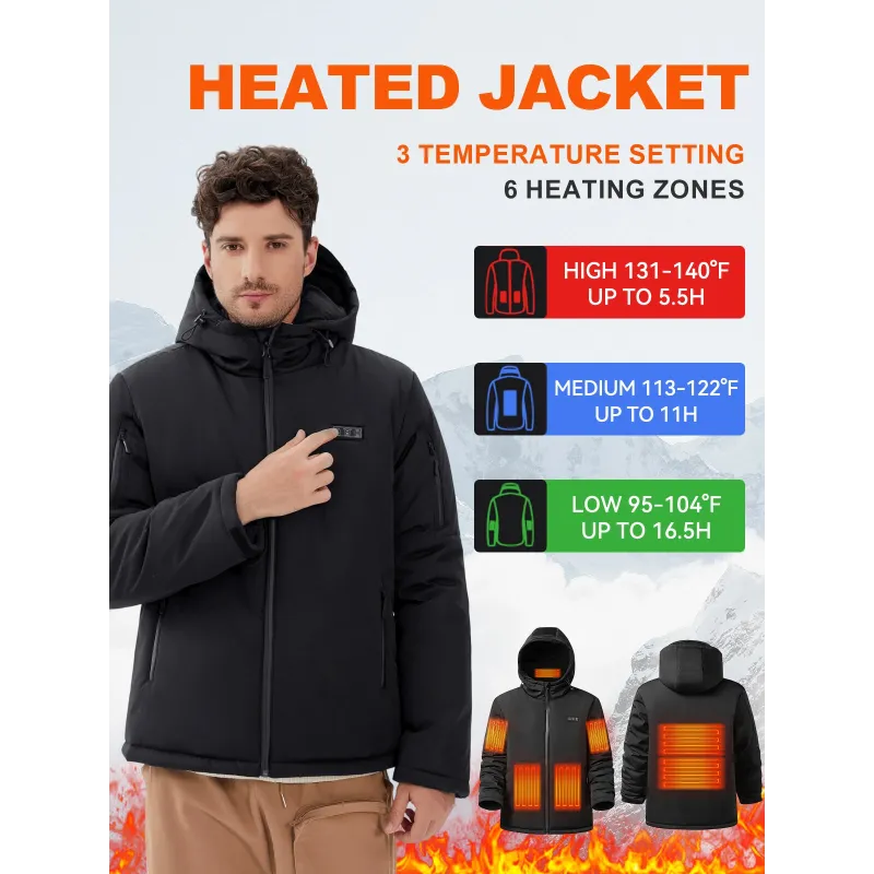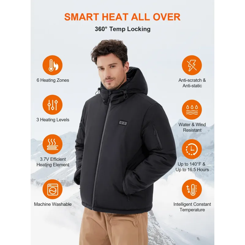 Auxo 6-Zone Men Heated Jacket for Men with 20000mAh Power Bank- Waterproof Lightweight Warm Electric Heating Coat for Winter Outdoor