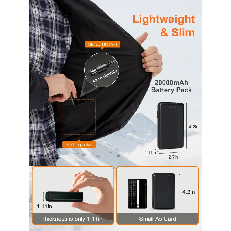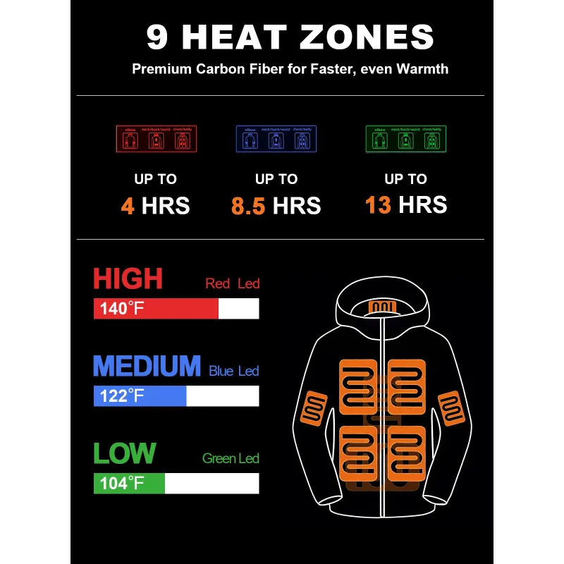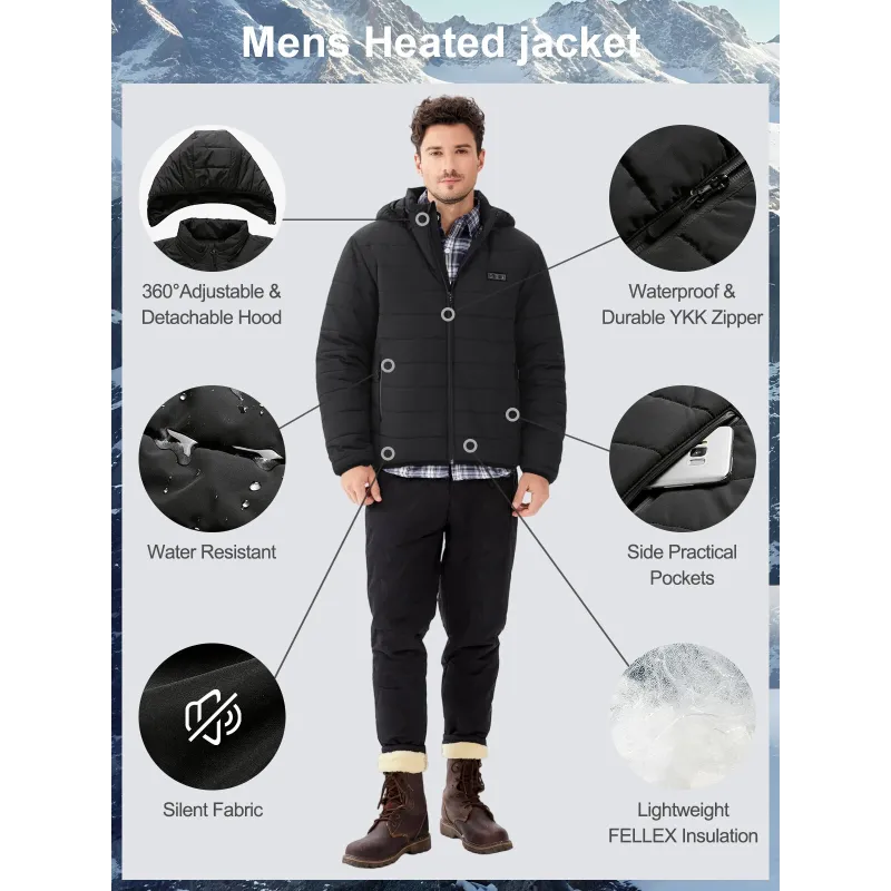 Auxo 9-Zones Men Heated Hooded Jacket with 20000mAH Power Bank - Waterproof Lightweight Warm Electric Heating Coat for Winter Outdoor