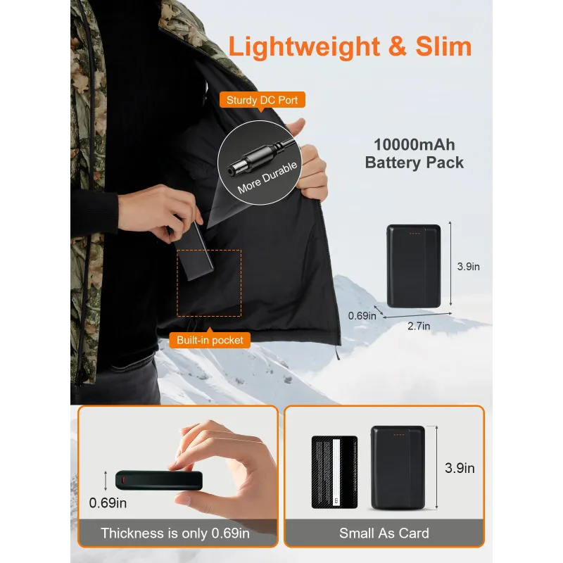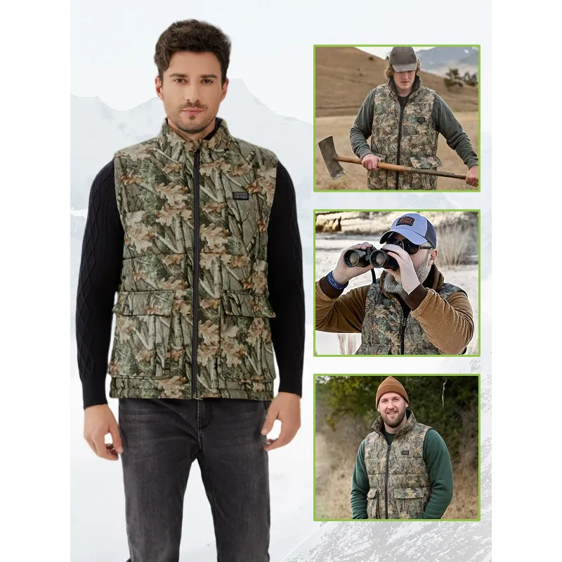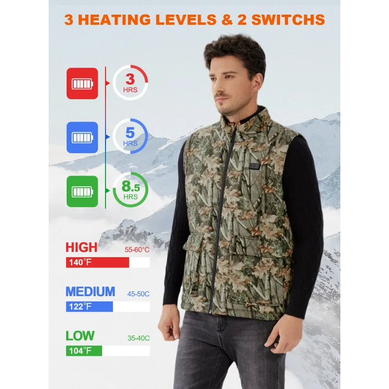 Auxo Heated Outdoors Vest for Men with 10000mAh Power Bank Included, 7 Heating Zones, Lightweight Camo Electric Heated Vest