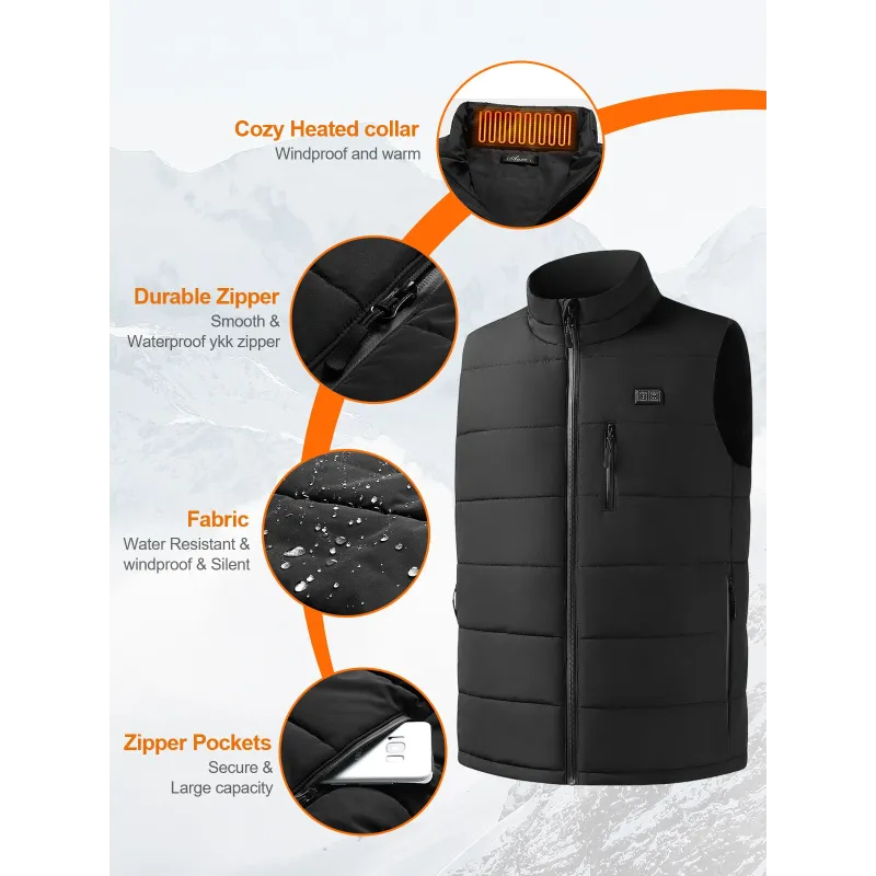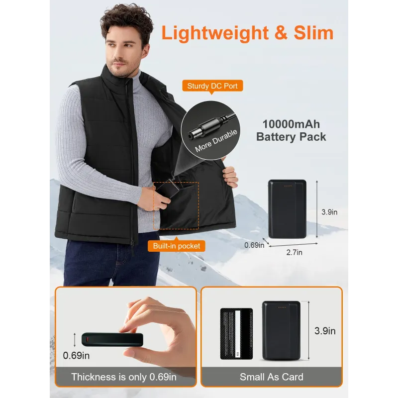 Auxo Men Heated Vest with 10000mAh Power Bank Included, 7 Heating Zones, Lightweight Electric Heating Vest