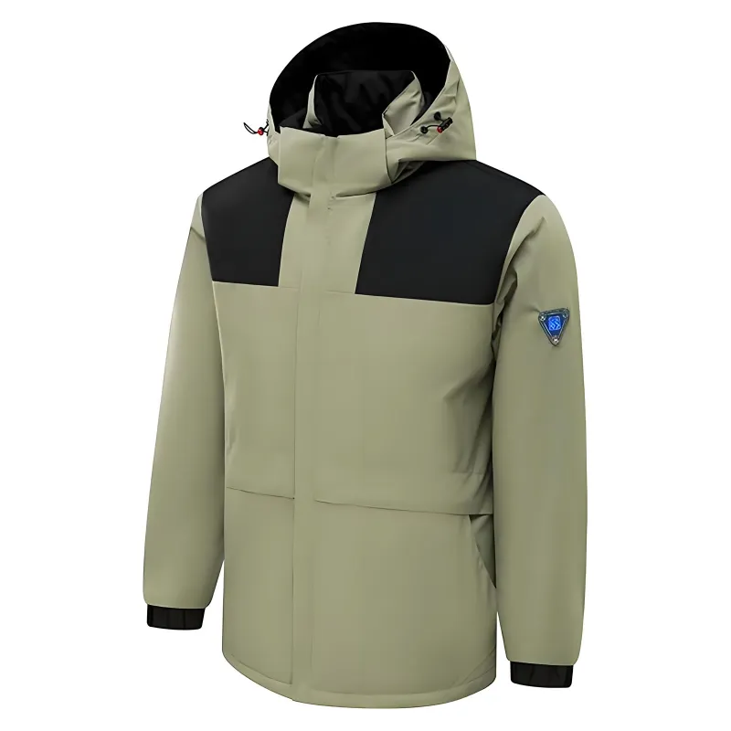 TENGOO HJ-04G 4 Heating Areas Jacket Windbreaker Unisex 3-Gear Thermal High Neck Hooded Coat Windproof Comfy Outerwear for Winter Hiking Outdoor Sport
