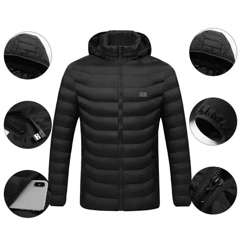 TENGOO HJ-11 Unisex Electric Heated Jacket - 11 Heating Areas,3-Modes Adjustable, USB Charging, Thermal Hoodie Jacket for Winter Sport Skiing Cycling