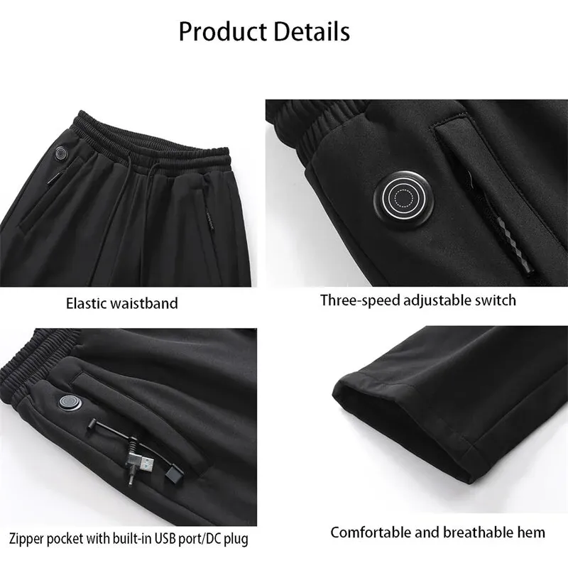 TENGOO HP-12 Unisex Electric Heated Pants - 12 Heating Areas, 3 Temperature Adjustment, DC/USB Charging, Thickening Thermal Warm Trouser for Winter