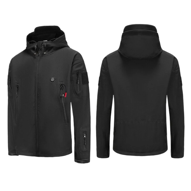 TENGOO Unisex Heated Jacket - 7 Heating Zones, 3-Level Temperature Control, Windbreaker Thermal, High Neck Hooded Coat for Winter Outdoor Sport