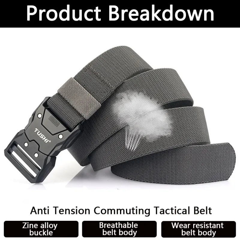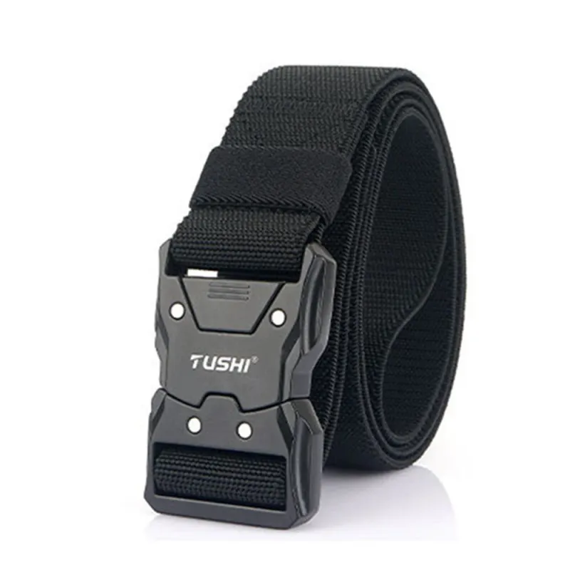 TUSH125cm Quick Release Tactical Belt Men Metal Buckle Nylon Elastic Girdle for Military Training Hiking Outdoor Work
