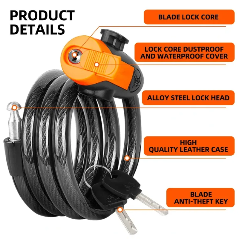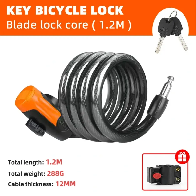 XANEAnti-thief Key Bike Lock 1.2m Length Steel Alloy Tough Protection Waterproof Portable Bicycle Lock for MTB Bicycle Road Bike