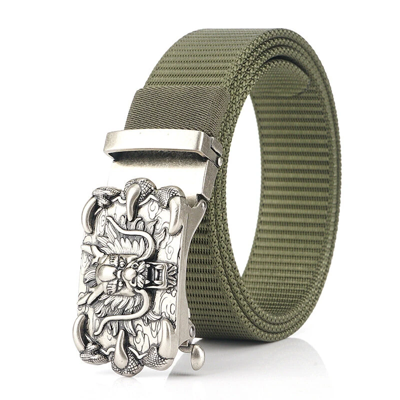 ZANLURMen's High-Grade Nylon Tactical Belt with Dragon Pattern Toothless Automatic Alloy Buckle Waistband