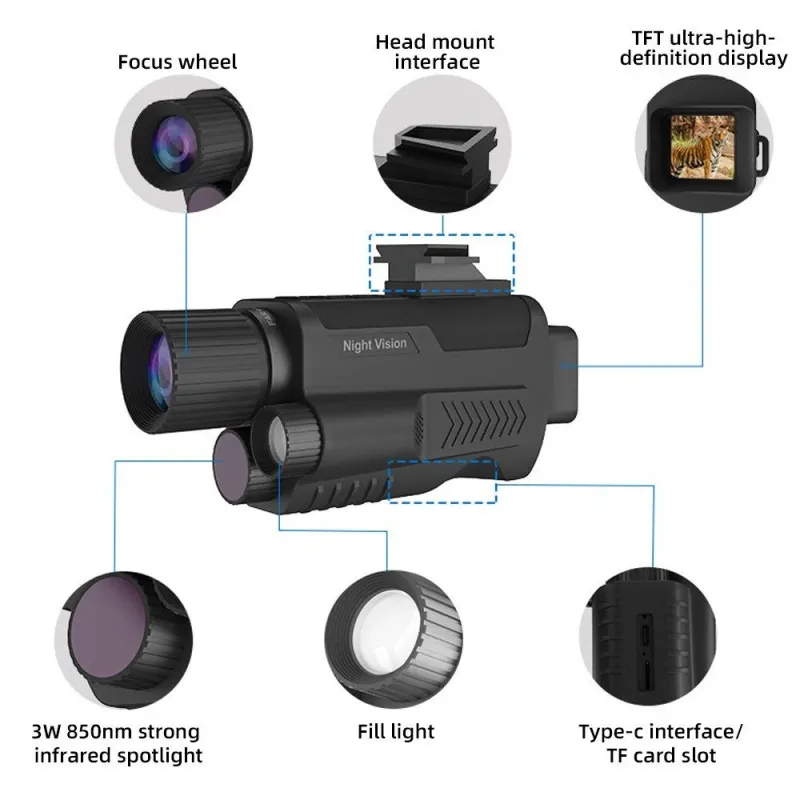 Outdoor Waterproof Night Vision Monocular 4K Infrared Digital Night Vision Telescope with Flashlight