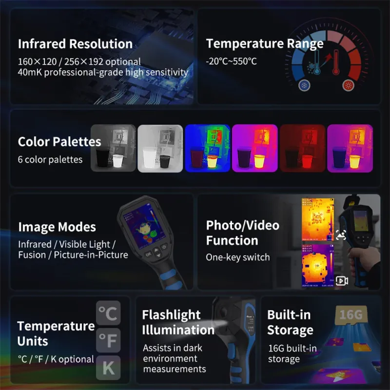 MUSTOOL 256x192 Visible light Thermal Imager Dual lens High Resolution Infrared Camera Wide Temperature Range Industrial 550 Handheld Thermal Imaging Device Rechargeable Battery
