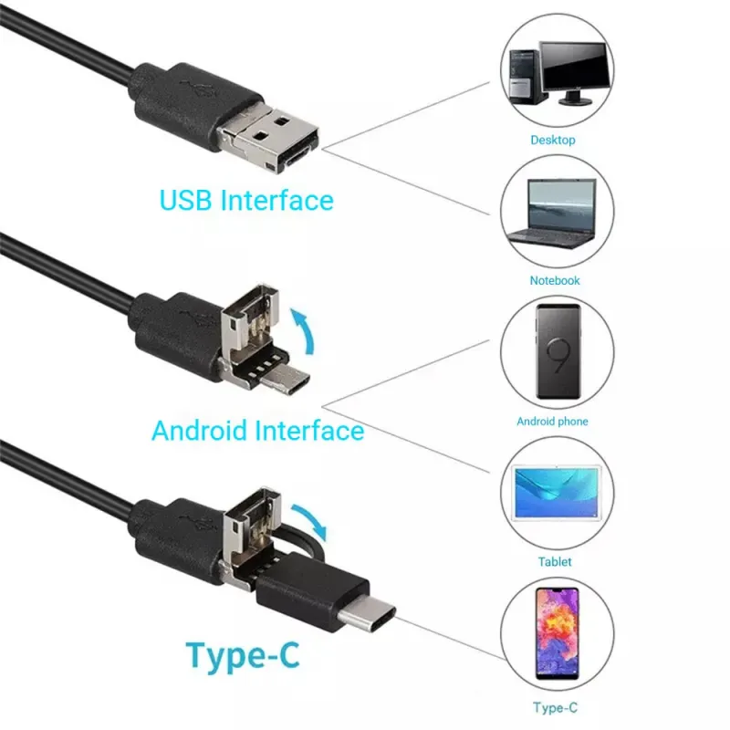 3 in 1 3.9mm 720P Industrial Endoscopes Smartphone Endoscope IP67 Waterproof 6 LED Lights PC Portable HD Endoscope Inspection Tool