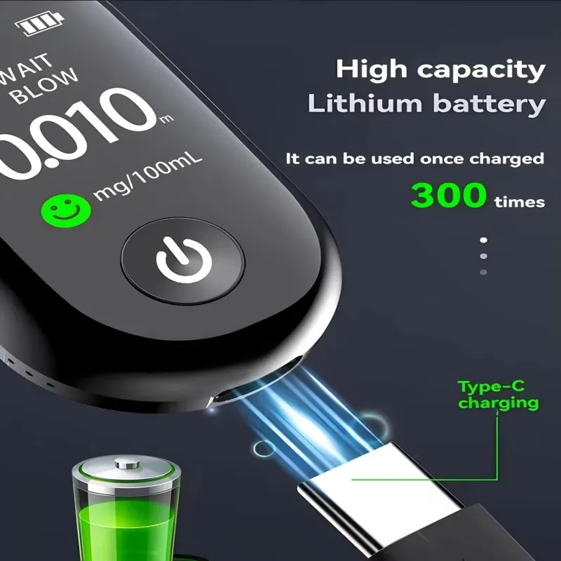 Breathalyzer, Professional-Grade Accuracy Alcohol Tester with USB Rechargeable, Portable Breathalyzer with TFT Digital Display