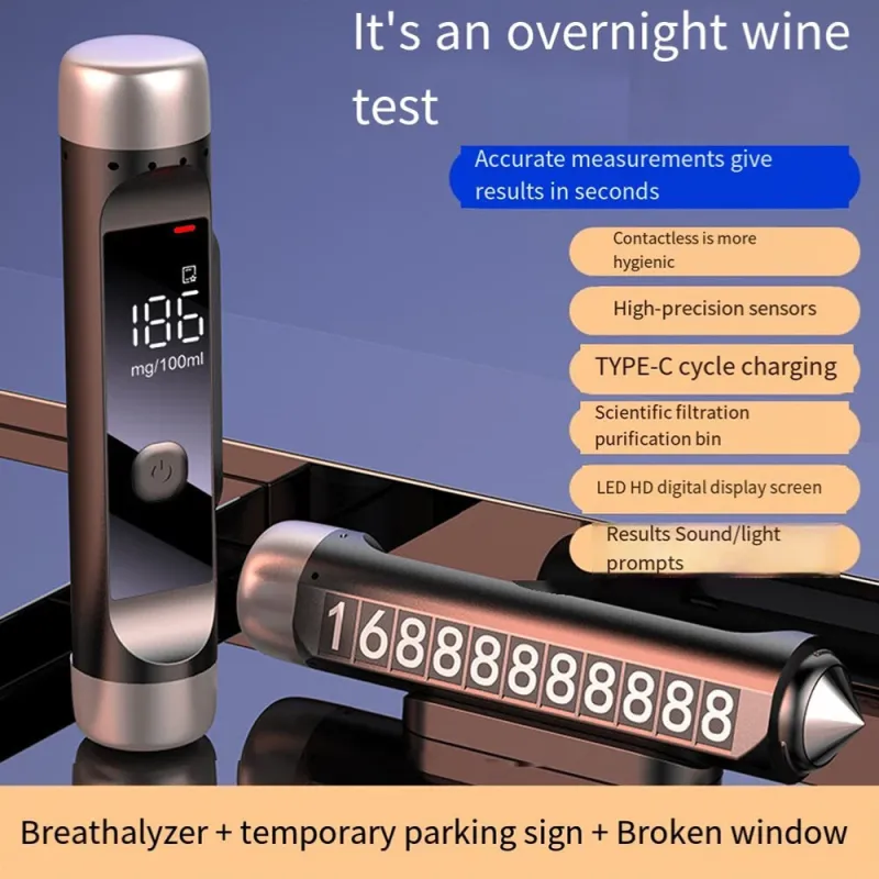 High Definition LCD Display Car Breathalyzer Test Instrument Blow Out Window Breaker Number Plate Vehicle Mounted Charging