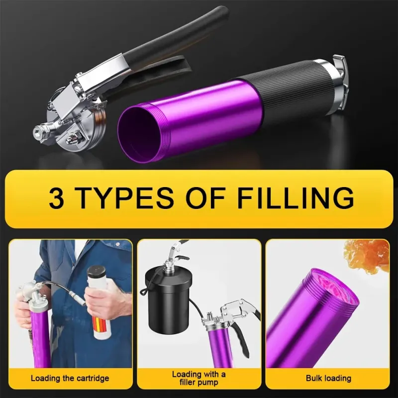 6pcs Set Heavy Duty Pistol Grip Grease Gun Aluminum Alloy 400CC Flexible Hose 8000 PSI Manual Greasing Injection Tool Multi-Mode Design Knurled Bucket Leak Proof Performance Machine Lubrication Equipment