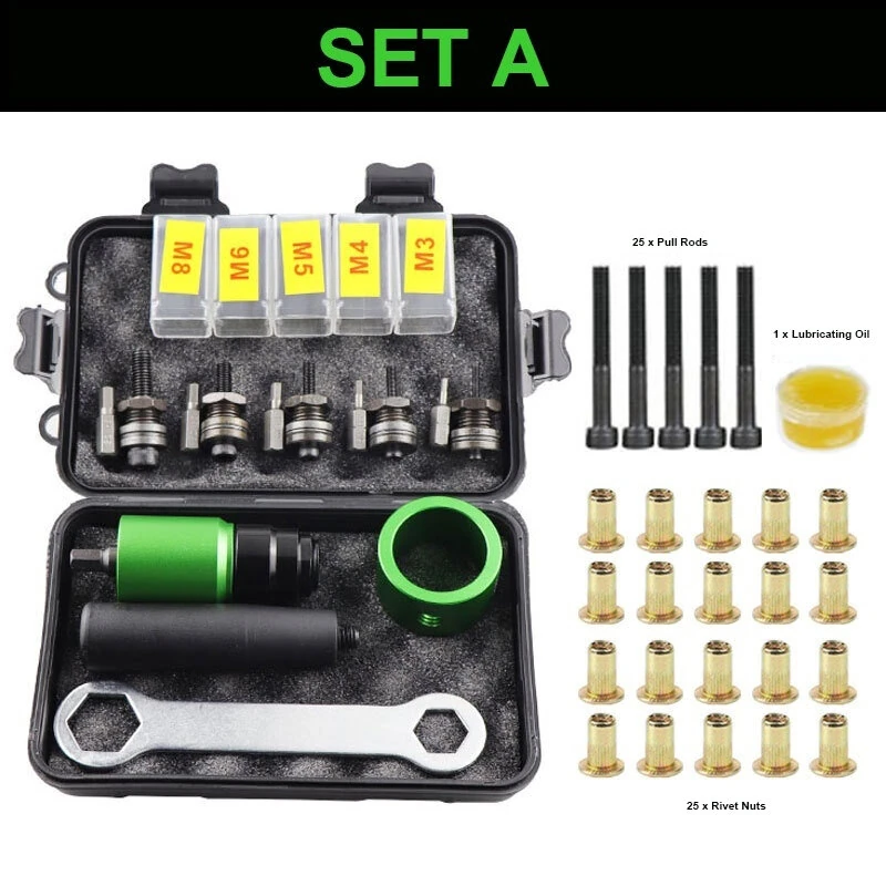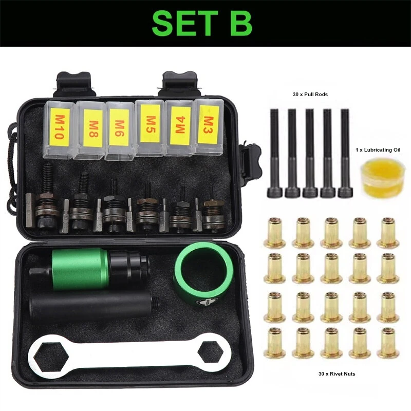 Rivet Nut Tool Kit Manual Drill Adapter Compatible with M3 M4 M5 M6 M8 M10 Aluminum Alloy Electric Gun Attachment Hex Wrench Accessories Portable