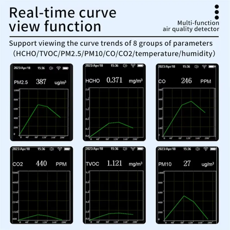 14-in-1 Tuya WiFi Air Quality Monitor HCHO TVOC CO2 Carbon Monoxide PM2.5 PM10 Temperature Humidity Portable Rechargeable Smart Sensor App Control