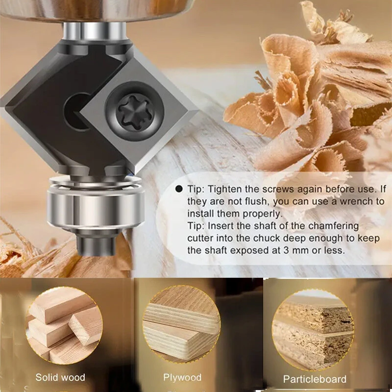 1/4 Inch 6mm 8mm Shank 45 Bevel Chamfer Milling Cutter Router Bit Tungsten Carbide HRC93 Precision Tool Double Blade