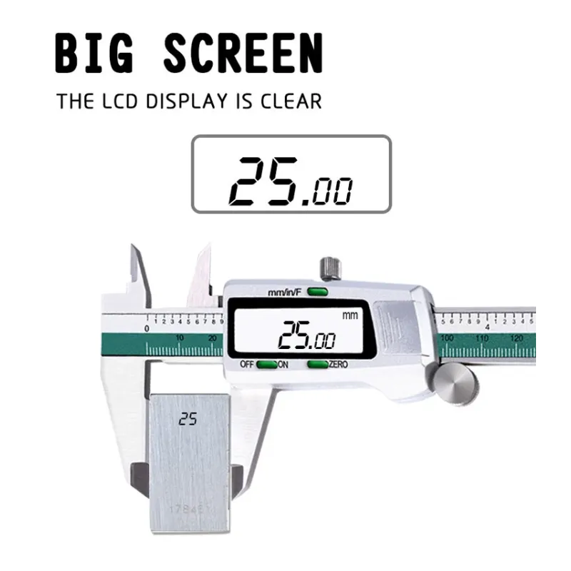 150mm Stainless Steel LCD Screen Display Digital Caliper 6 Inch Fraction / MM / Inch High Precision Stainless Steel LCD Vernier Caliper