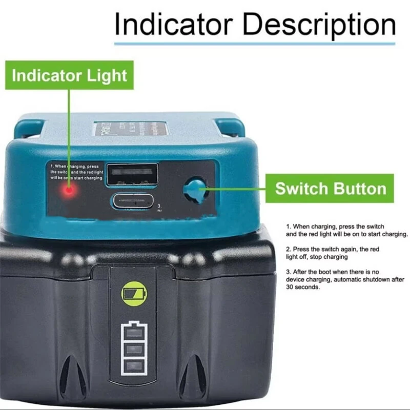 1pc For Makita 18V With USB With Type-C Battery Holder For Makita 18V Battery BL1840 BL1850 BL1860 Charger Adapter Fast Charging