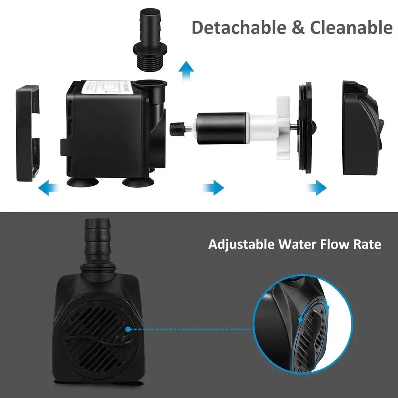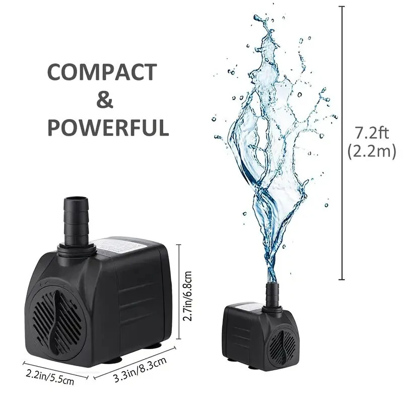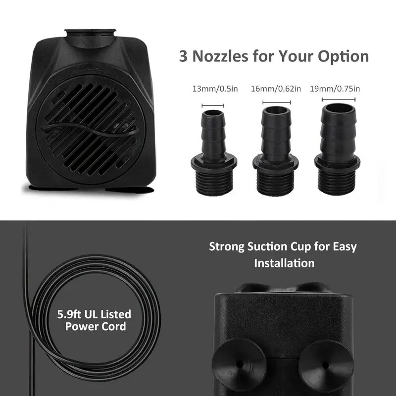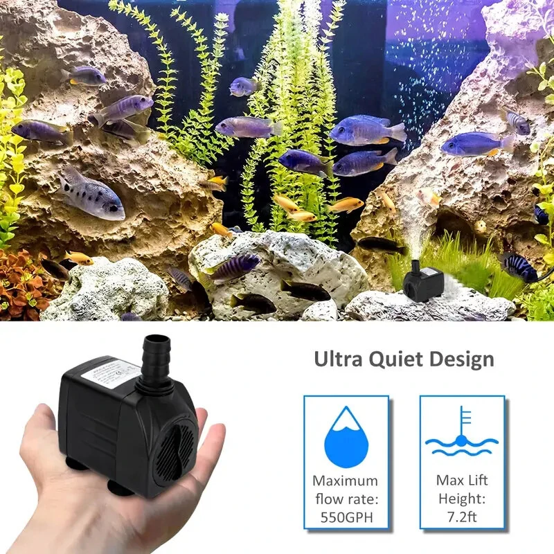30W Ultra Quiet Submersible Water Pump 550GPH High Lift for Aquariums Fish Tanks Ponds Hydroponics Statuary with 3 Nozzles US/EU Plug Option