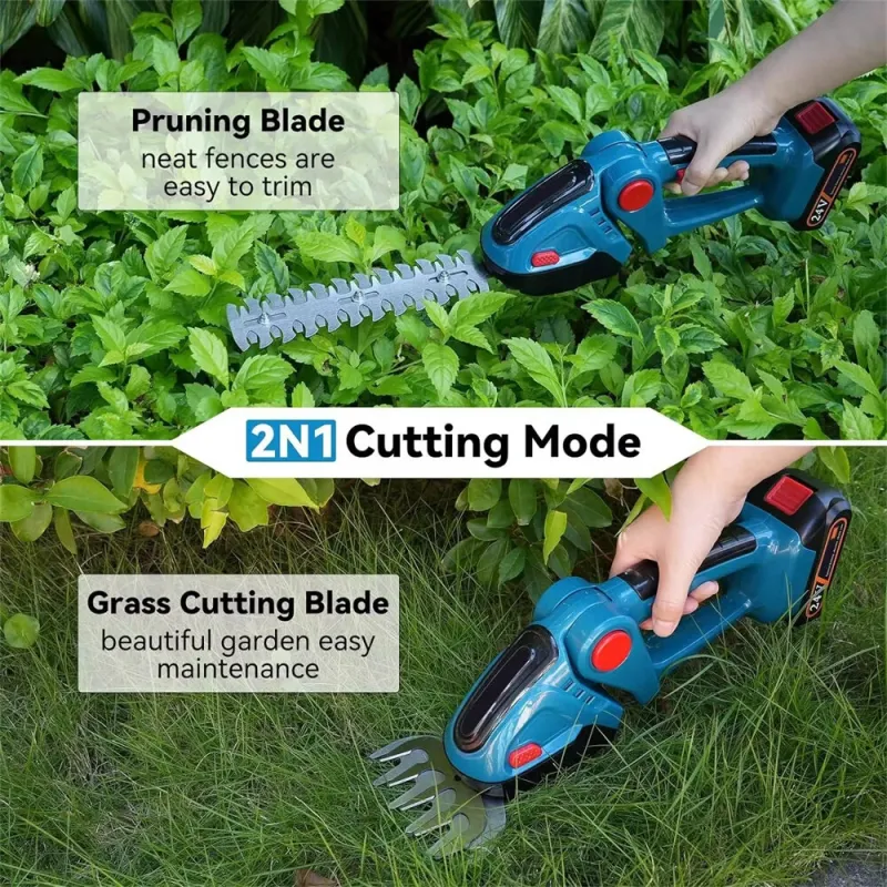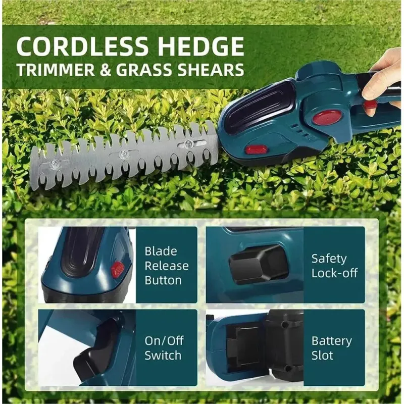 Cordless 2-in-1 Hedge Trimmer and Grass Shear 18V Rechargeable for Weeding and Pruning Compatible with Batteries Precision Cutting Garden Tool with Charger and Batteries