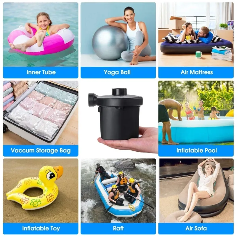 USB Rechargeable Portable Electric Air Pump 2000mAh Battery Lightweight Design 3 Nozzle Options Quick Inflation Deflation for Air Mattress Pool Floats Vacuum Bags Camping