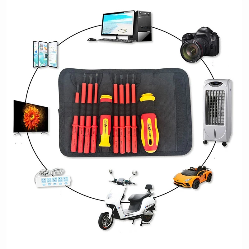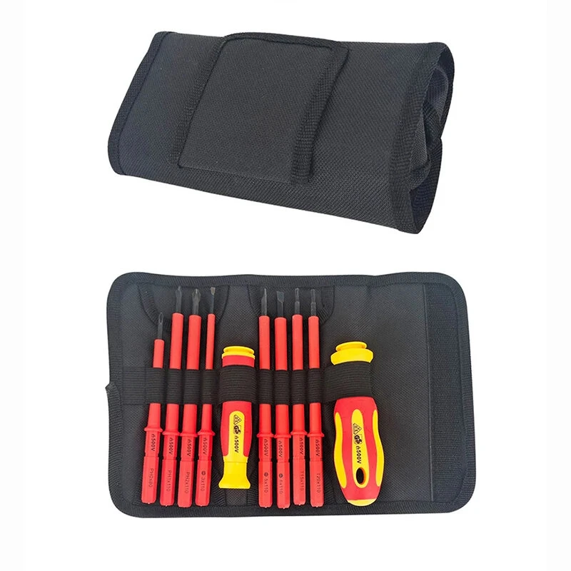 10 in 1 Insulated Screwdriver Set Home Maintenance Electrician Kit Anti Electric Red Ergonomic Handles for Electrical Repairs and Home Devices