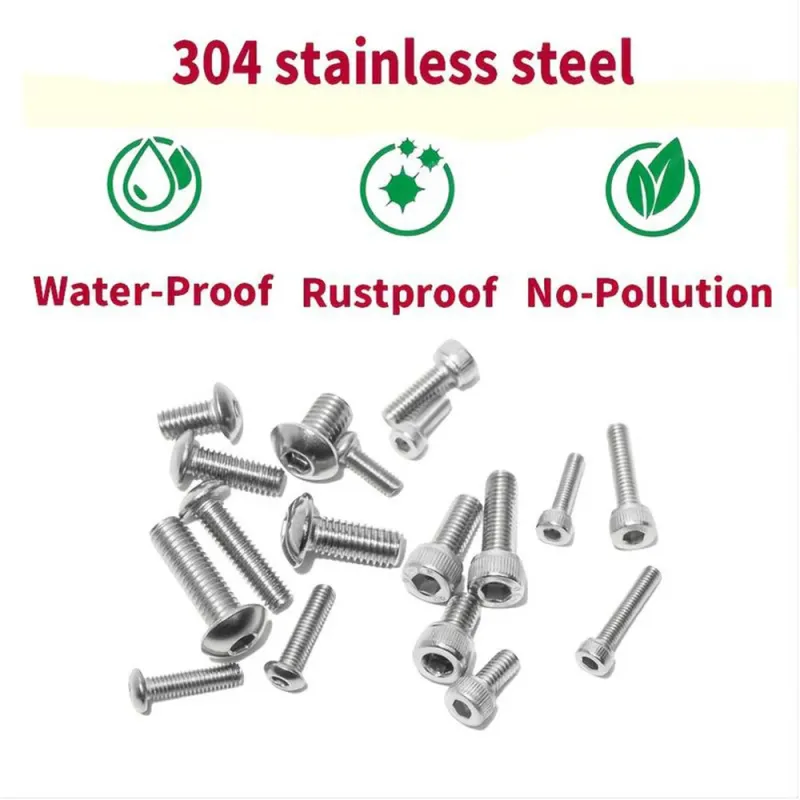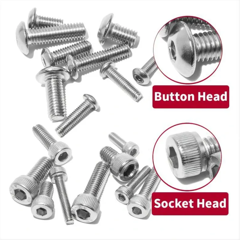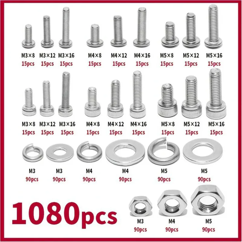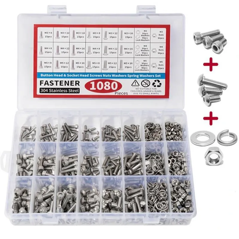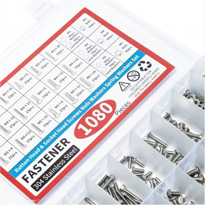1080pcs Nuts And Bolts Assortment Kit M3 M4 M5 M6 Screw Set Button Head & Socket Head Metric Screws 304 Stainless Steel Nut & Bolt Assortment Sets