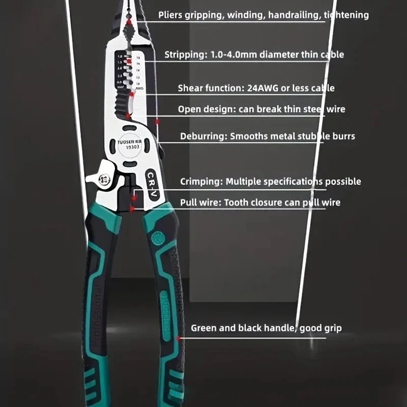 1PCS Multi-Purpose Vanadium Steel Electrician Pliers Multifunctional Wire Stripping Cutting Pulling Tool Non-Slip Rubber Grip Professional Use