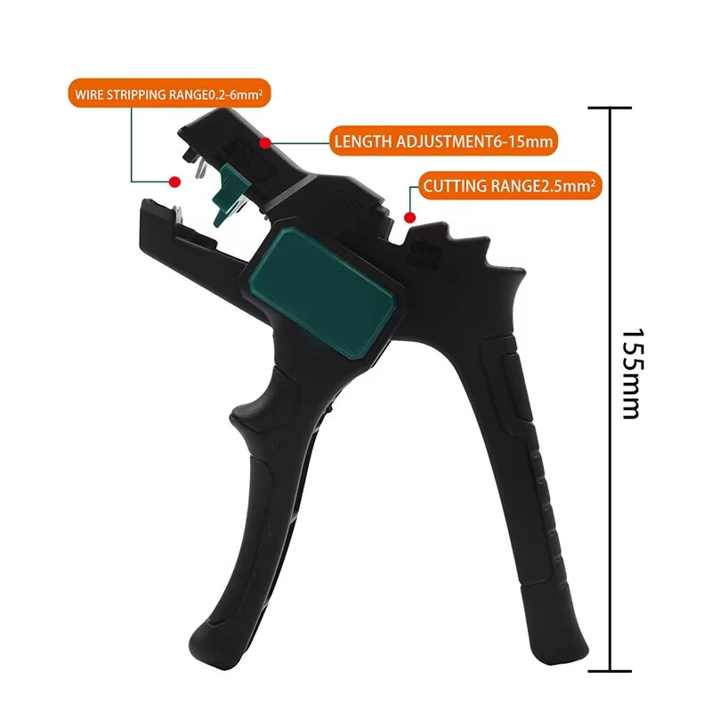 Automatic Wire Stripper Multifunctional 2 in 1 Tool Precision Steel Blades Adjustable Length 0.2-6mm Stripping Cutting Lightweight Electricians Wire Tool