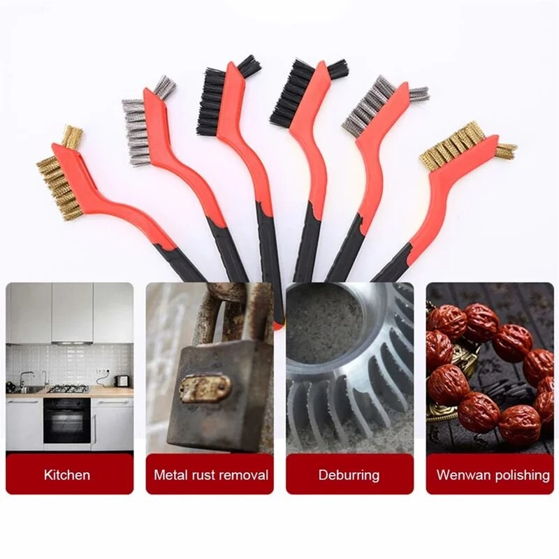 6pcs Wire Brush Set with Nylon Brass Steel Bristles for Metal Cleaning and Polishing Ideal for Industrial and Home Applications