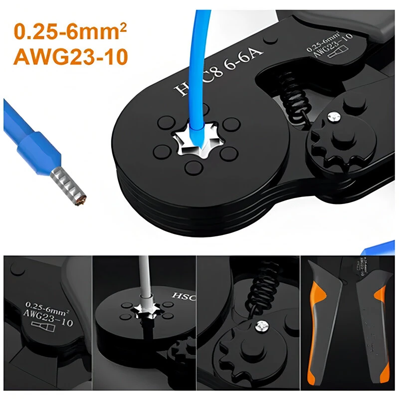 Hexagonal Self-Adjustable Ratchet Ferrule Crimping Tool Kit 23-10AWG 0.25-6mm Crimper Kit with 400-2000pcs Wire Terminals
